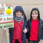 One class also created a Kindness Jar, writing one kind thing about every pupil, reinforcing the importance of positive words and actions. P6 classes joined St Gerard’s for a special Anti-Bullying Parade, proudly carrying posters and banners with messages of equality, respect, and inclusion. Despite the wet and windy weather, pupils marched with enthusiasm to share the message that kindness matters. Afterwards, everyone enjoyed pizza and juice, thanks to St Gerard’s hospitality, and connected with other schools united against bullying. School councillors also shared practical strategies, including the THINK rule (Is it True? Helpful? Inspiring? Necessary? Kind?) and WITS (Walk away, Ignore, Talk it out, Seek help), empowering pupils to respond effectively if bullying occurs.